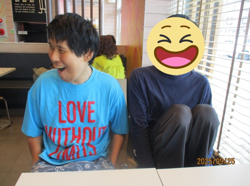 外出に行くことがなかなかできていなかったお二人だったので、今回マクドナルドへ行き、素敵な笑顔を見ることができて、職員一同とても嬉しく思いました。