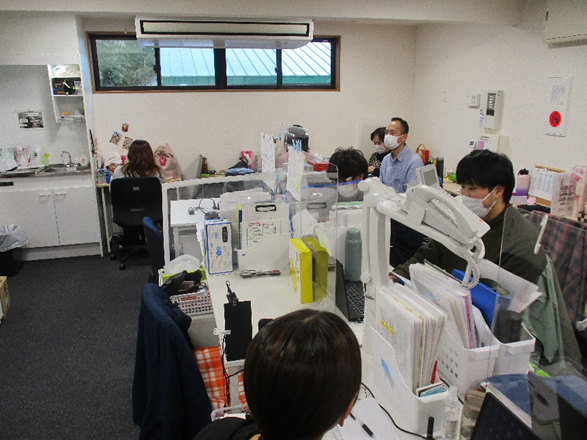 写真は、事務所でのミーティング中の様子です。